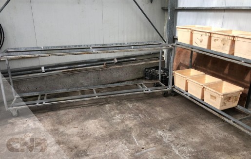 Karren worden gebruikt voor het in de cel zetten van tulpenEr kunnen 14 bakken op per kar