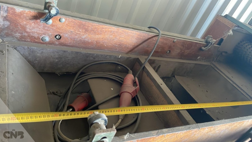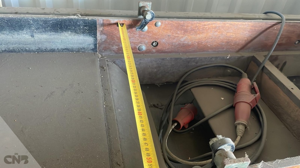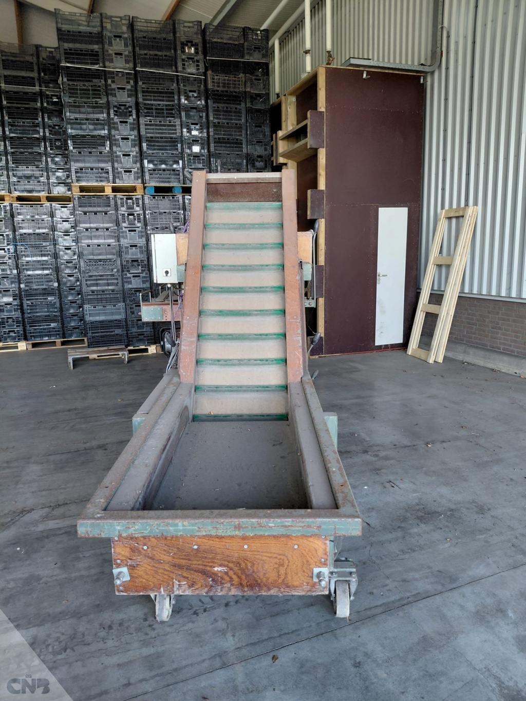 voorraadbak met opvoerelevator van 47 x 243 cm.