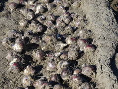 CNB-vertegenwoordigers Hawikjo Wijnands en Ed Walkier, gespecialiseerd in tulp, zien het nieuwe daghandelseizoen somber in. “Tot eind mei stond het gewas er goed op, het zou een redelijke tot normale oogst worden. Begin juni werd het plotseling heel warm, waardoor het gewas te snel is afgestorven. Dit betrof alle regio’s, met een uitschieter in de Bollenstreek, waar het nog een paar graden warmer was.” De gevolgen daarvan zijn nu zichtbaar in de oogst. “Er worden minder aantallen gerooid, zo’n 30 tot 40 procent, en de bollen zijn minder gegroeid dan was verwacht. Dat geldt over de hele linie, voor alle maten. Het is wel mogelijk dat de vroege soorten de dans net zijn ontsprongen. In dat segment zou de schade nog kunnen meevallen.” Voor het plantgoed is het nog te vroeg om conclusies te trekken, vinden de collega’s. “We weten nog niet precies hoe dit uitpakt.” Het goede nieuws is dat de bollen die gerooid worden, er wel goed uitzien. “Het zijn mooie bollen, de kwaliteit is goed.”