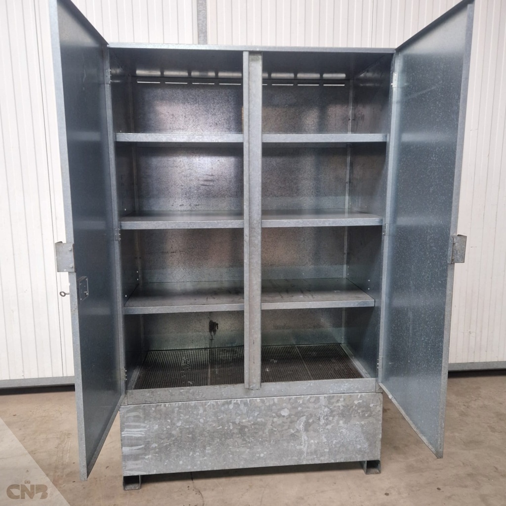 Ruime en nette gewasbeschermingmiddelenkastOpvangbak